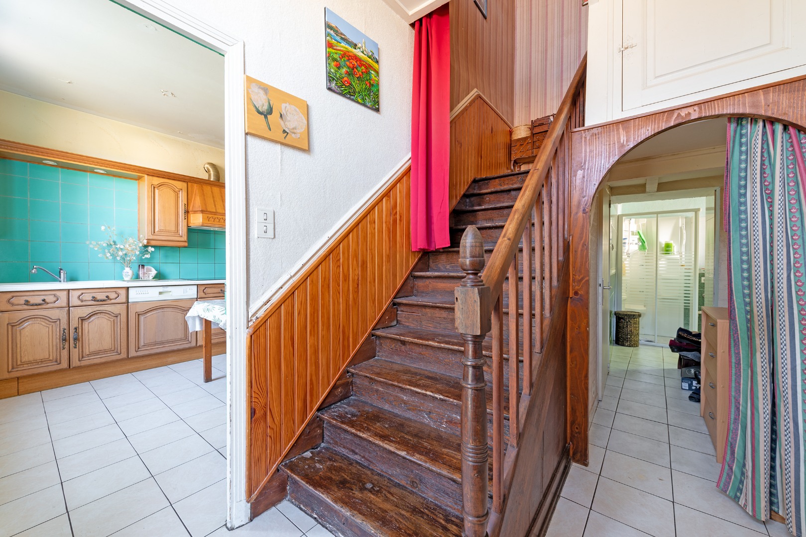 Cette maison des années 30 se compose d'une cuisine séparée, 1 salon avec un insert, 3 chambres dont une au rdc, 2 salles d'eau.