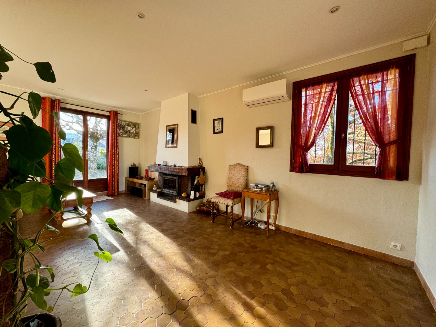 L’espace jour, climatisé, de 42 m2 au total est très ajouré et offre la possibilité d’une douce flambée grâce à son bel insert.