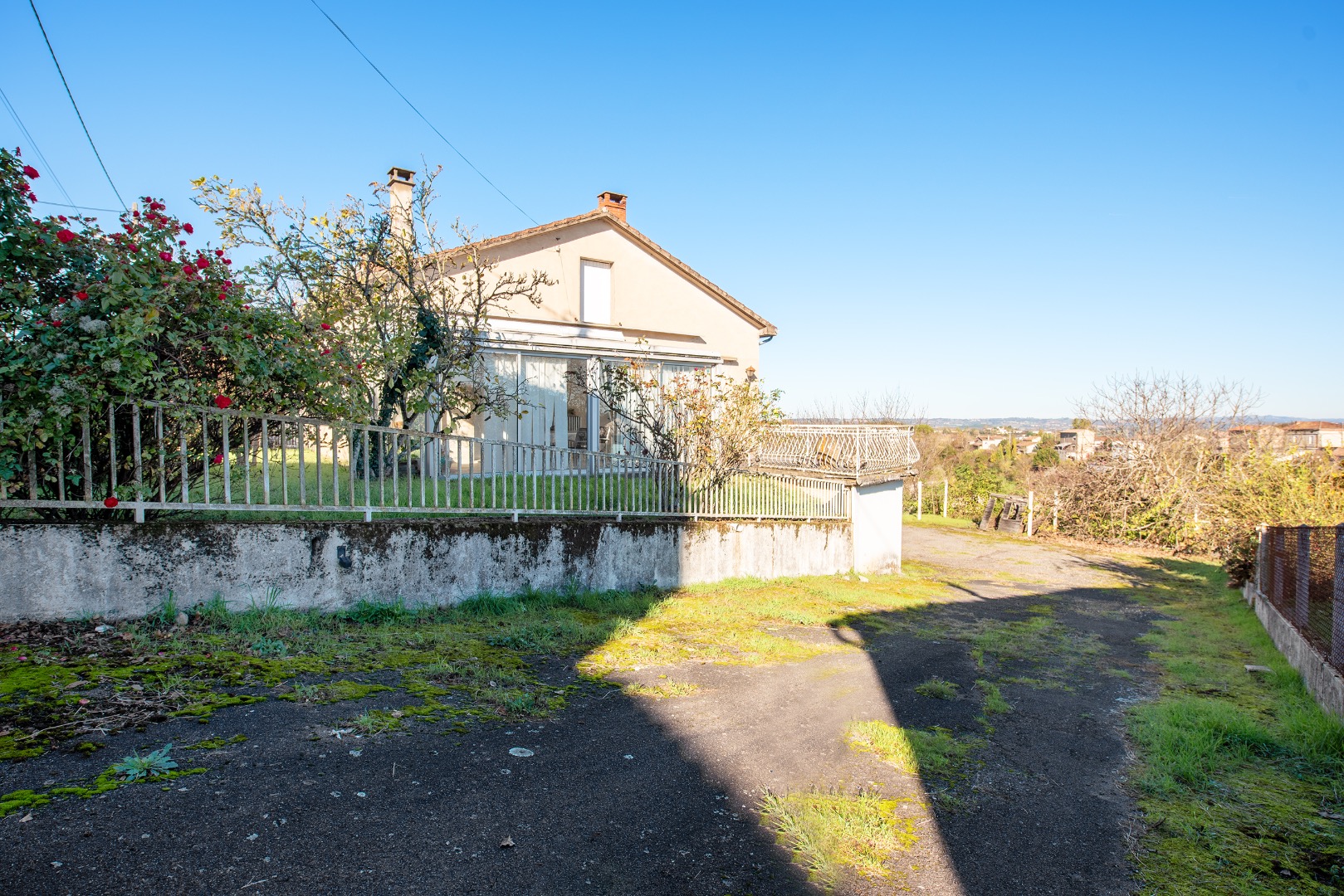 À l’extérieur, vous profiterez d’un très grand parking sécurisé, accessible par un grand portail, pouvant accueillir plus de 10 véhicules.