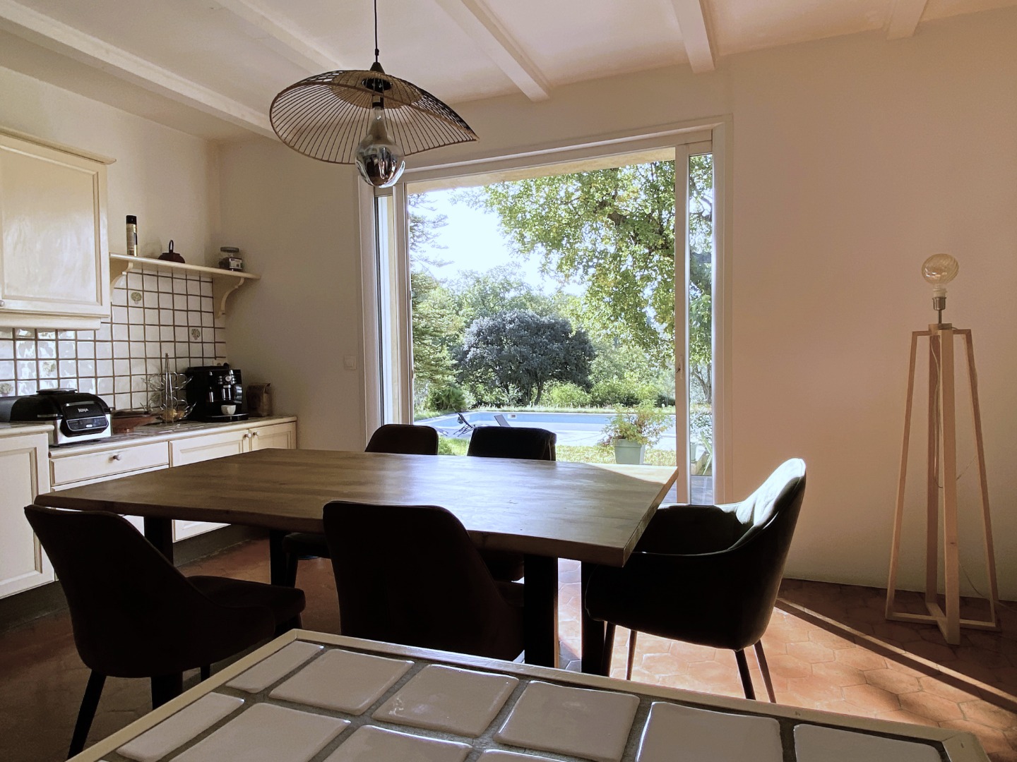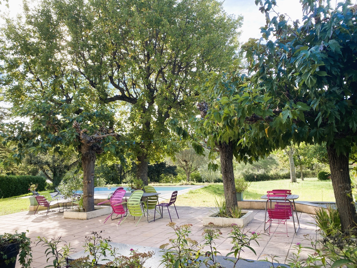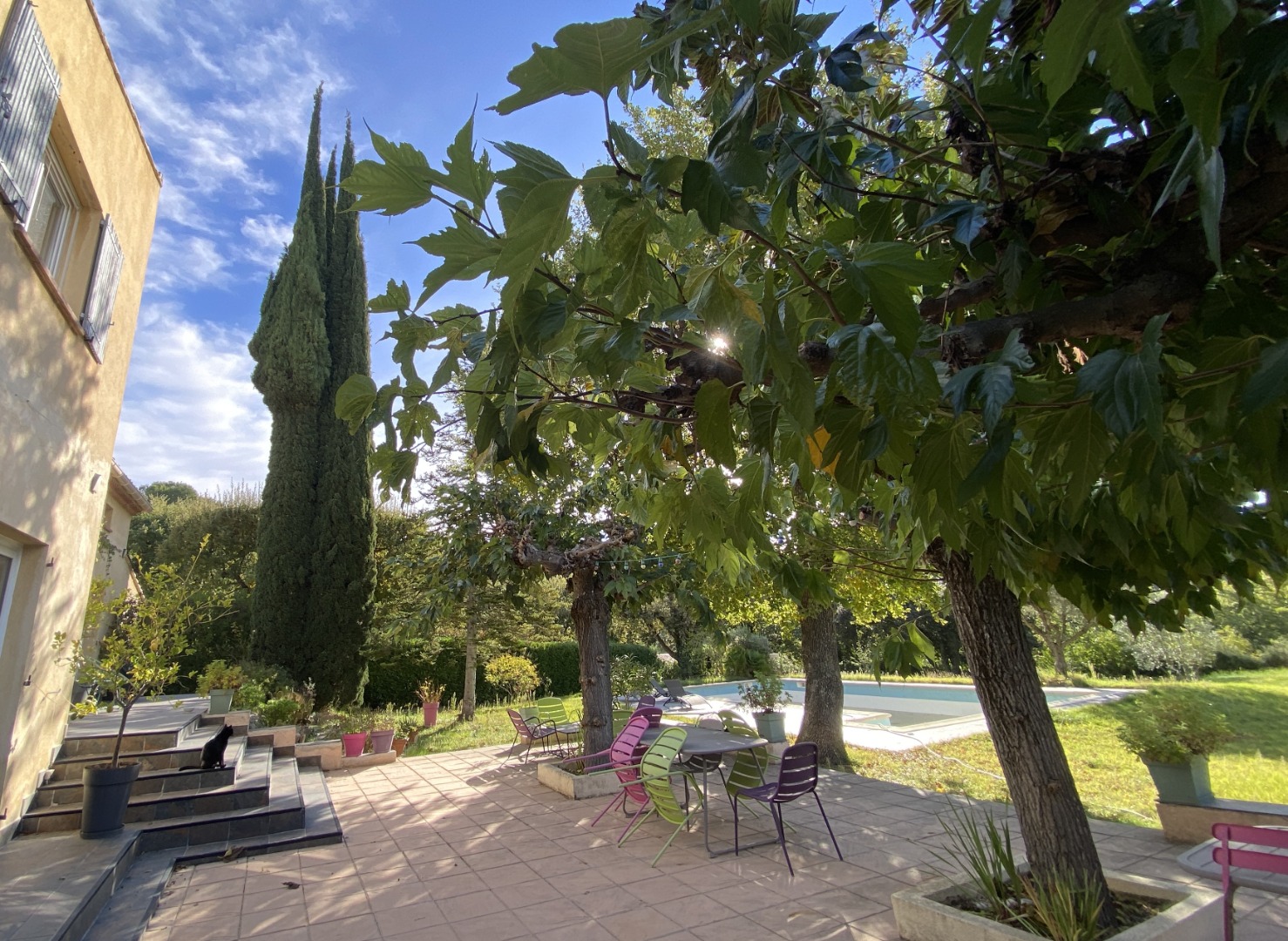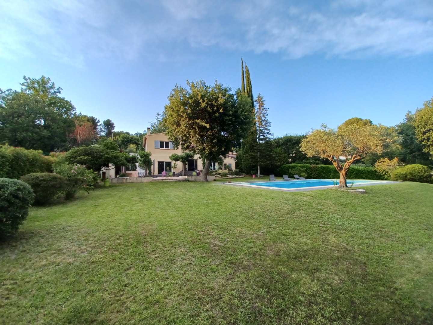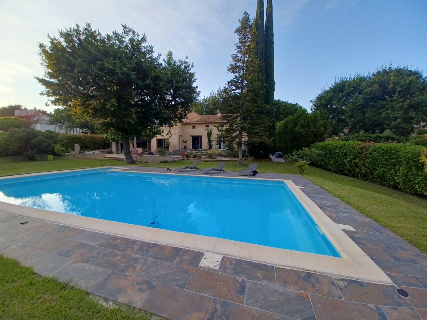 Jardin clos, piscine 6x12 m, cuisine d’été, bassin d’ornement, grande terrasse, garage, portail automatique, stationnement ombragé.
