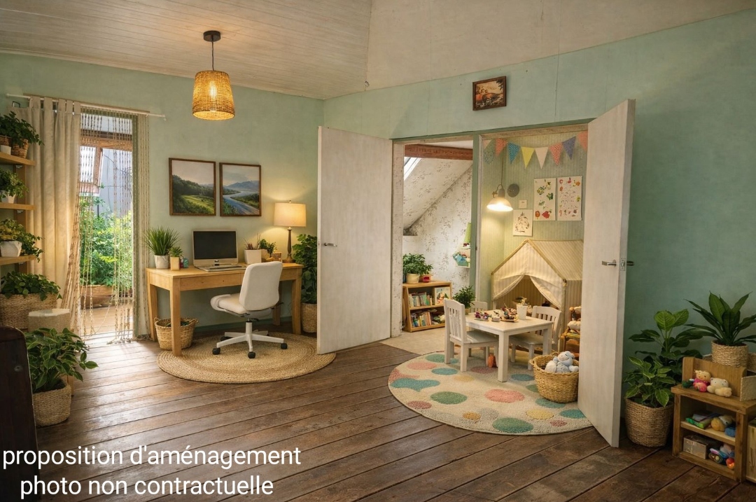 Prévoir travaux à l'étage: électricité, fenêtres de toit et isolation.