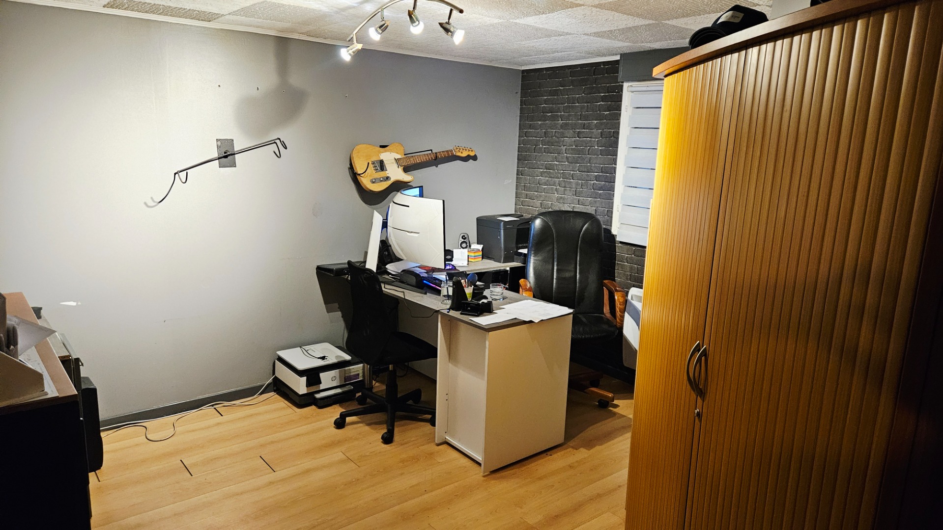 Sous sol complet avec bureau de 10 m² et  garage avec porte motorisée.