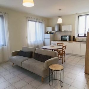 Grand appartement T2 de 57 m² au 1er et dernier étage d'une petite copropriété de caractère de 4 lots. Il présente une entrée avec placards qui dessert une chambre, un séjour cuisine, une salle d'eau et un wc séparé.