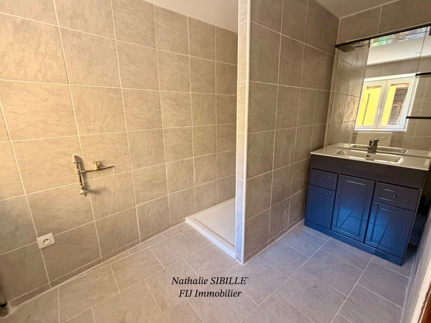 • Salle d’eau entièrement carrelée avec douche italienne