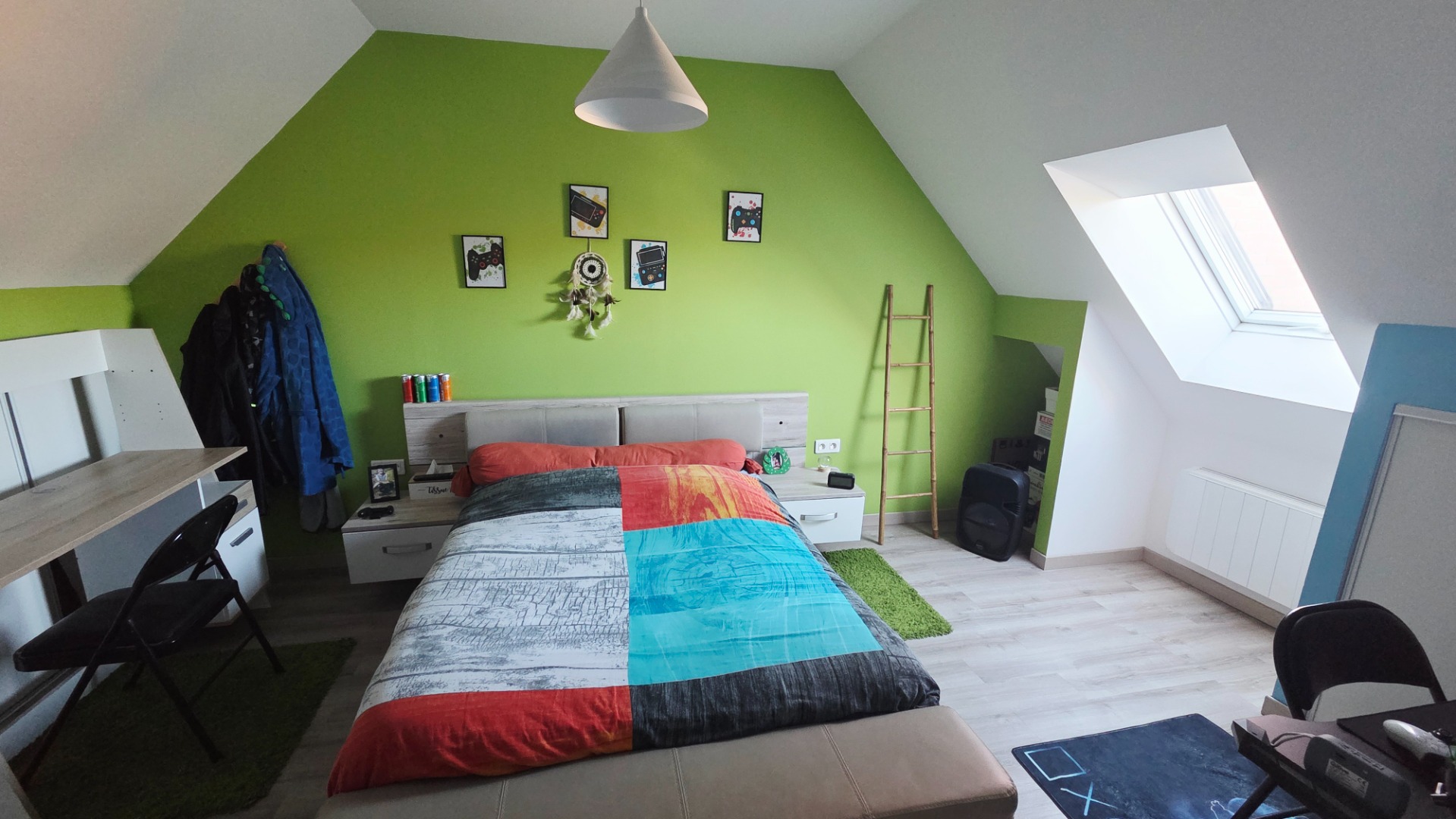 A l'étage : Une chambre de 11,5 m², une pièce de 8 m² ( considérée actuellement en chambre) et une salle d'eau de 5 m² ( Baignoire/douche, double vasque et possibilité d'installer un wc).