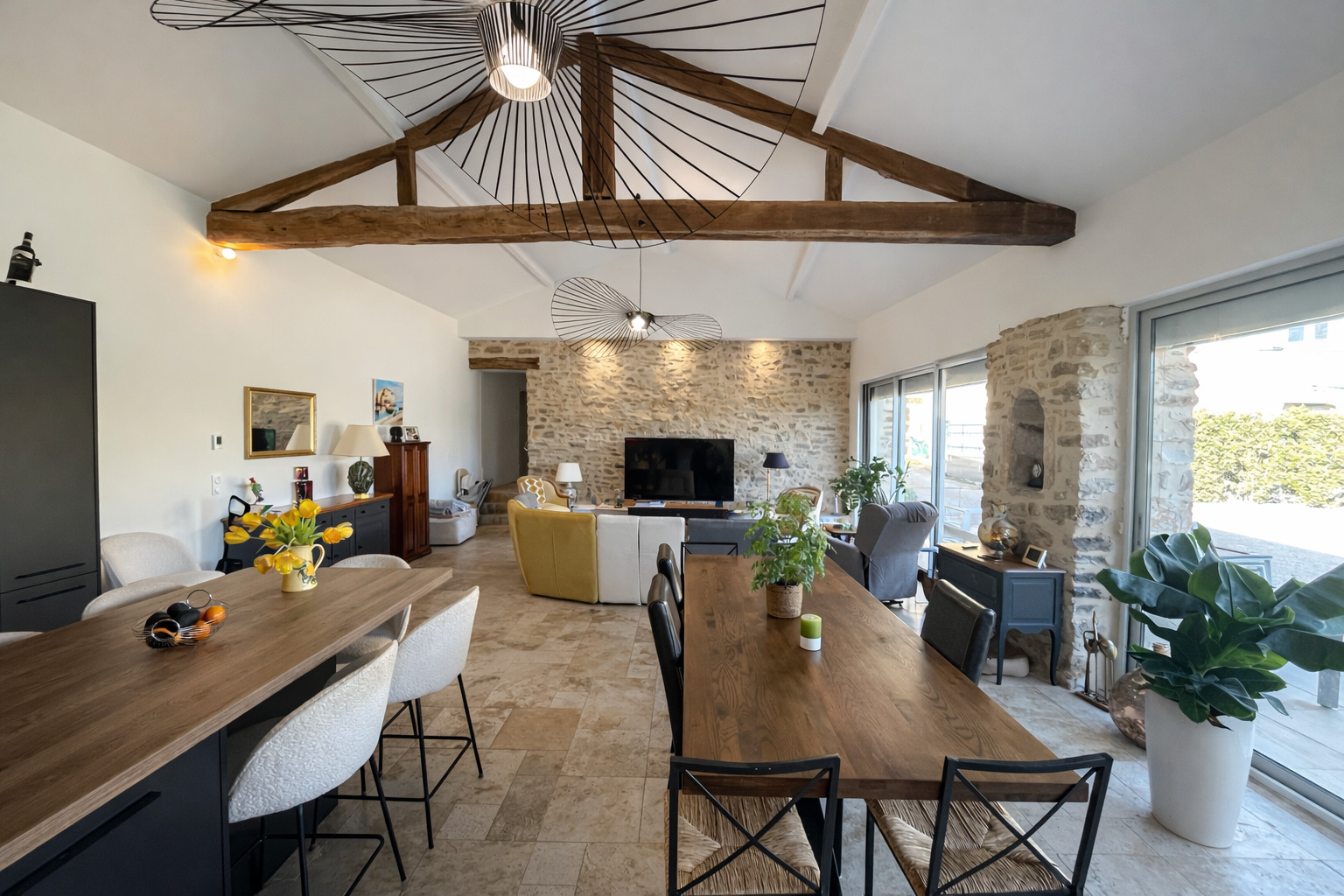 Suite à un repositionnement récent, cette propriété en pierres dorées entièrement rénovée en 2023, développe environ 149 m2 habitables et se distingue immédiatement par son cachet, ses volumes et son potentiel d’évolution.