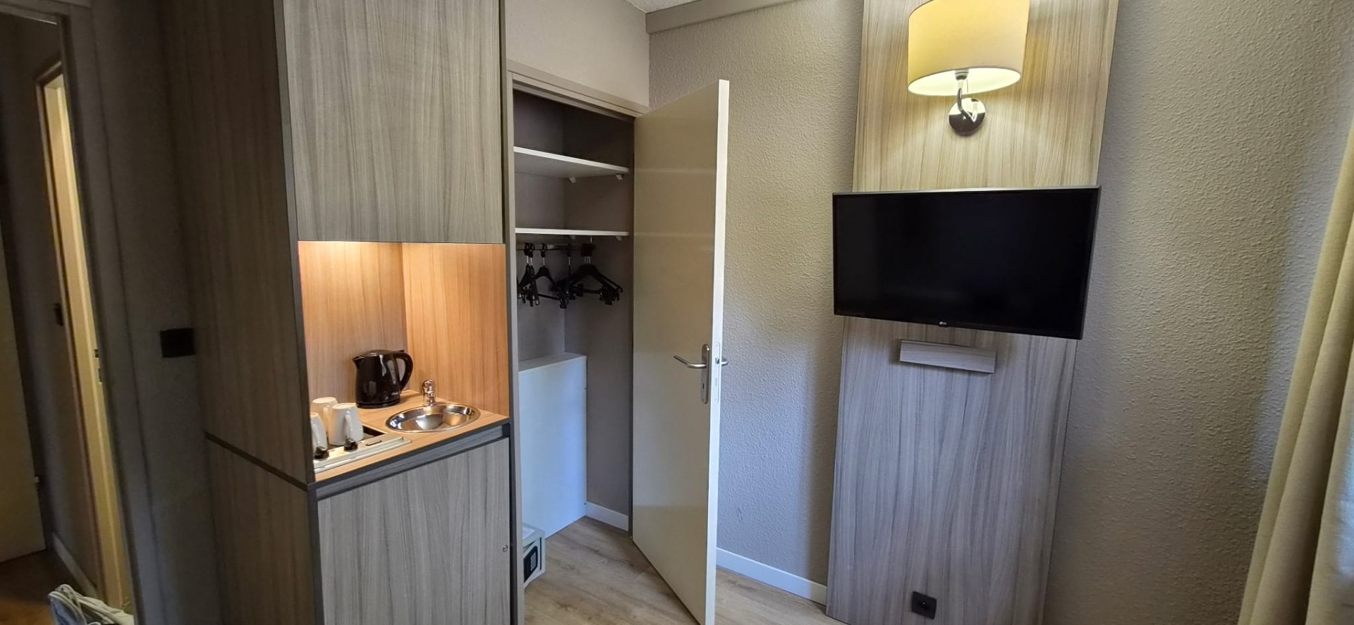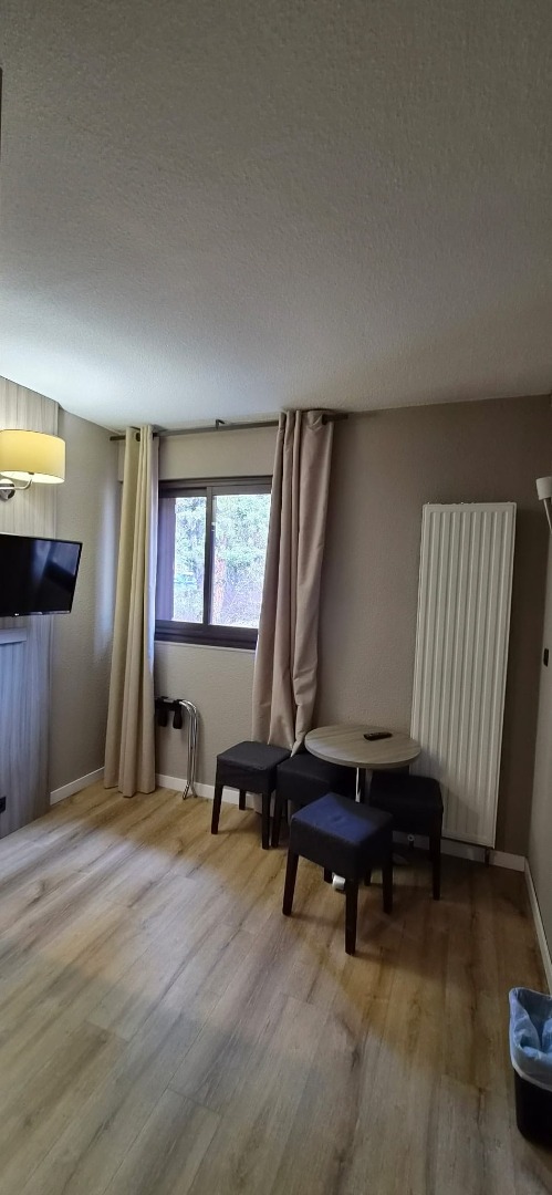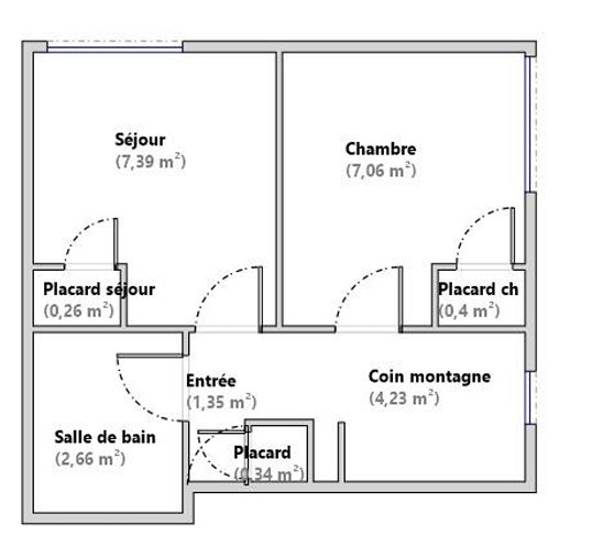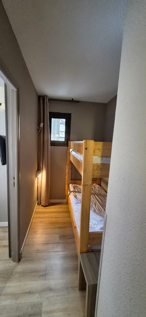 Il se compose d'une entrée avec rangements , d'un coin montagne, d'une chambre avec placard, d'un séjour et d'une salle de bain avec WC,