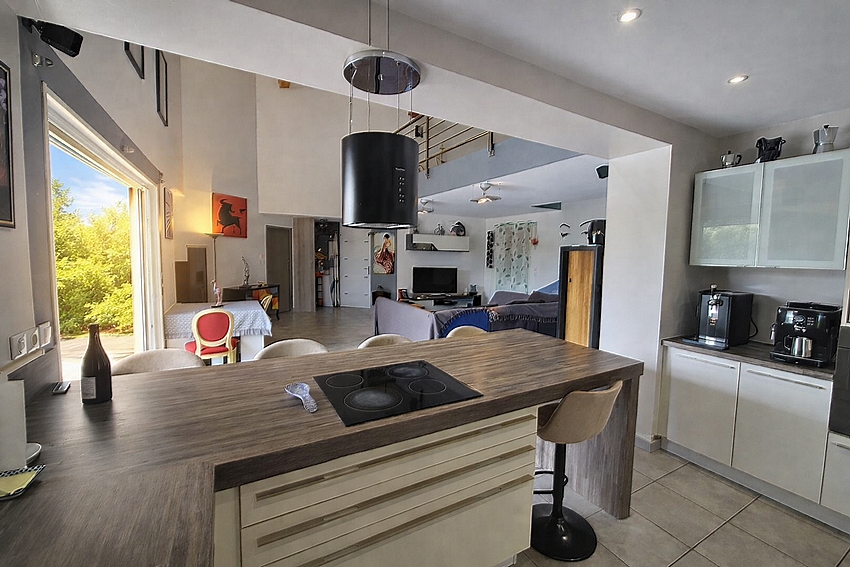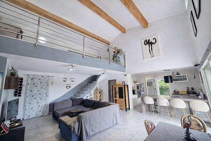 - Grand séjour lumineux de 50m² avec une baie à galandage donnant une proximité entre intérieur et extérieur très agréable
