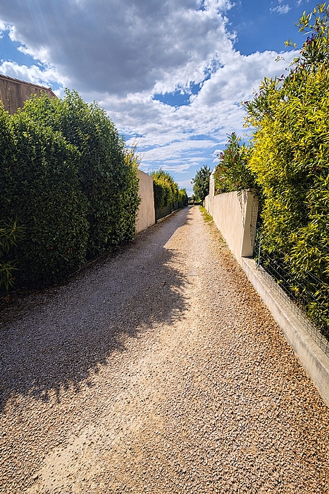 Terrain clos de 1200m² dans un quartier calme, chemin privatif de 50 m qui permet d'être à l'écart de la route.
