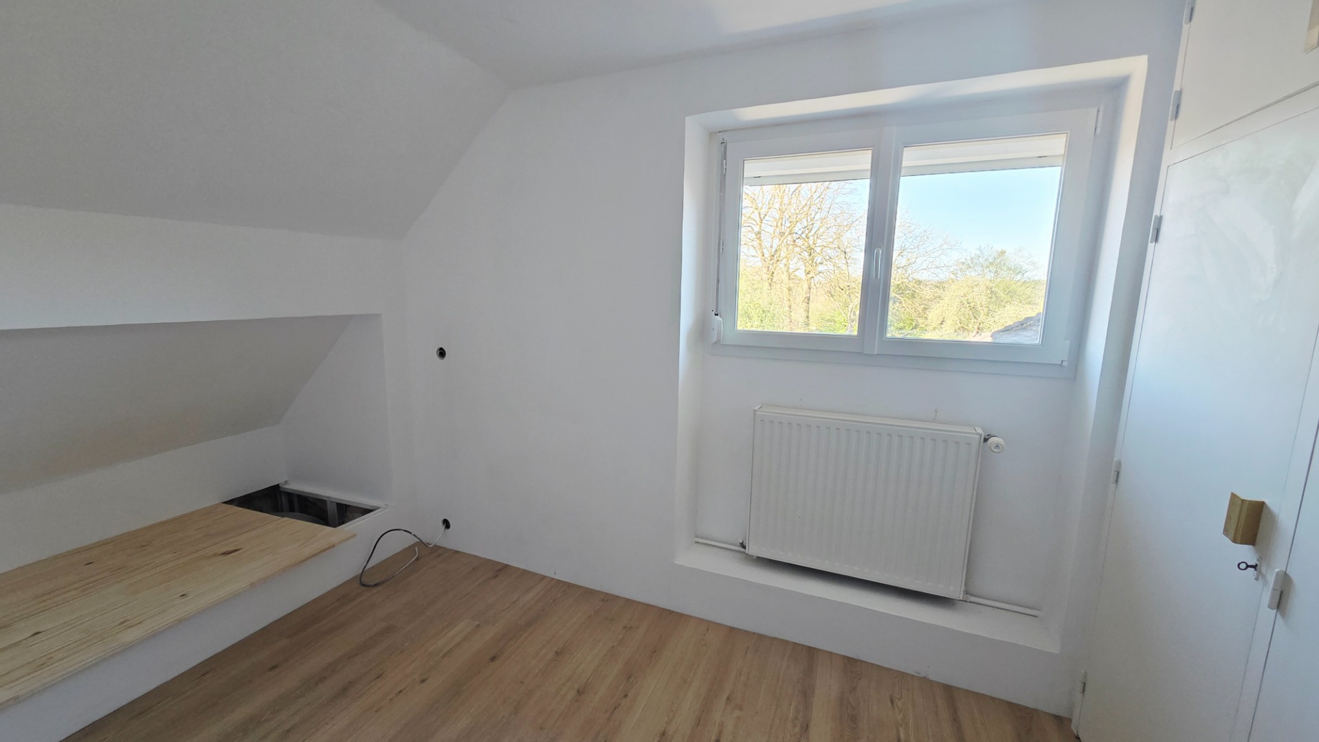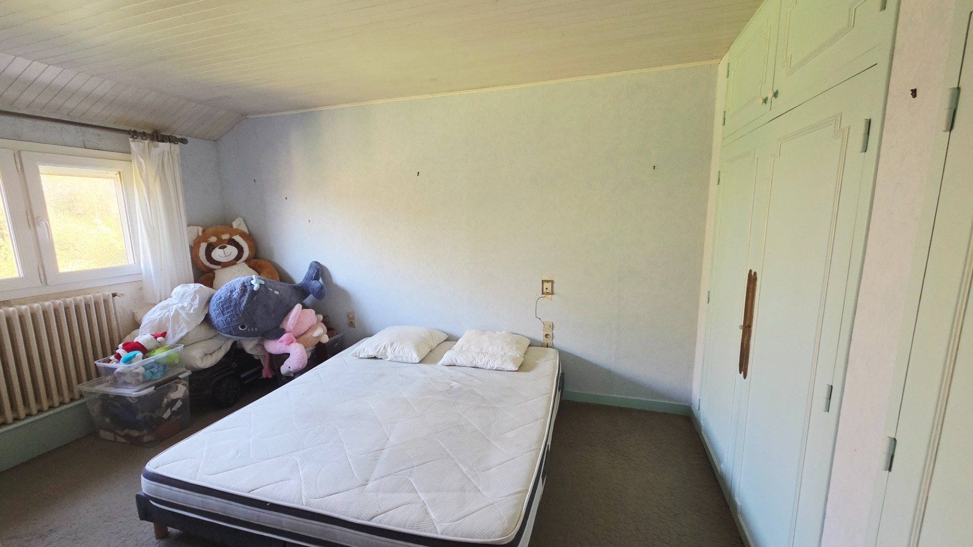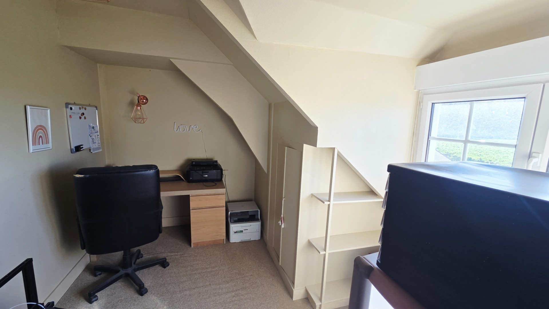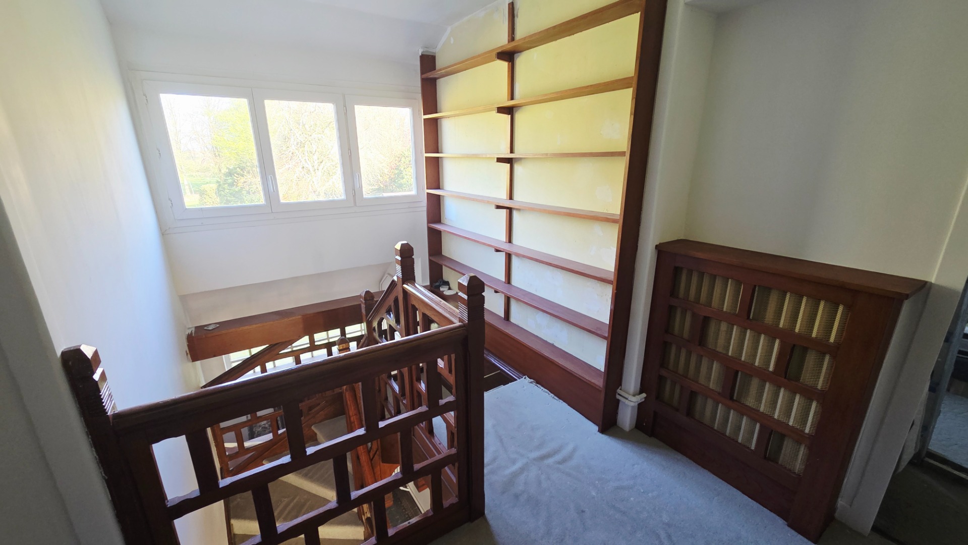 A l'étage : Trois chambres ( 16 m², 10 m² et 9 m²), un bureau de 8 m², des parties combles de d'environ 18 m², un accès sur d'autres combles et un WC.
