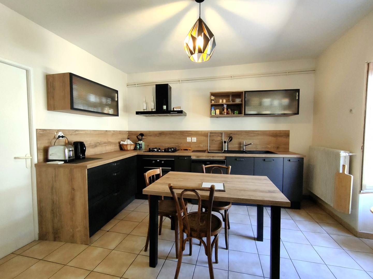 Au rez-de-chaussée, une cuisine équipée avec cellier/buanderie, une salle à manger, un salon et un WC. Le salon lumineux s'ouvre sur une terrasse et le jardin arboré, parfaits pour vos moments de détente.